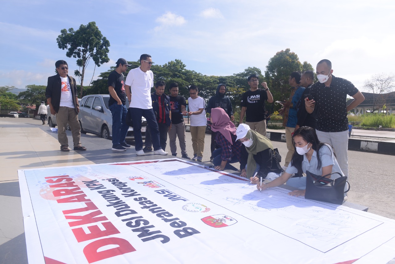 Mewakili Ketua Umum Teguh Santosa, Sekretaris Jenderal (Sekjen) JMSI Mahmud Marhaba bersama pengurus daerah (Pengda) lainnya menyatakan sikap mendukung pemberantasan korupsi yang dilakukan oleh KPK RI.