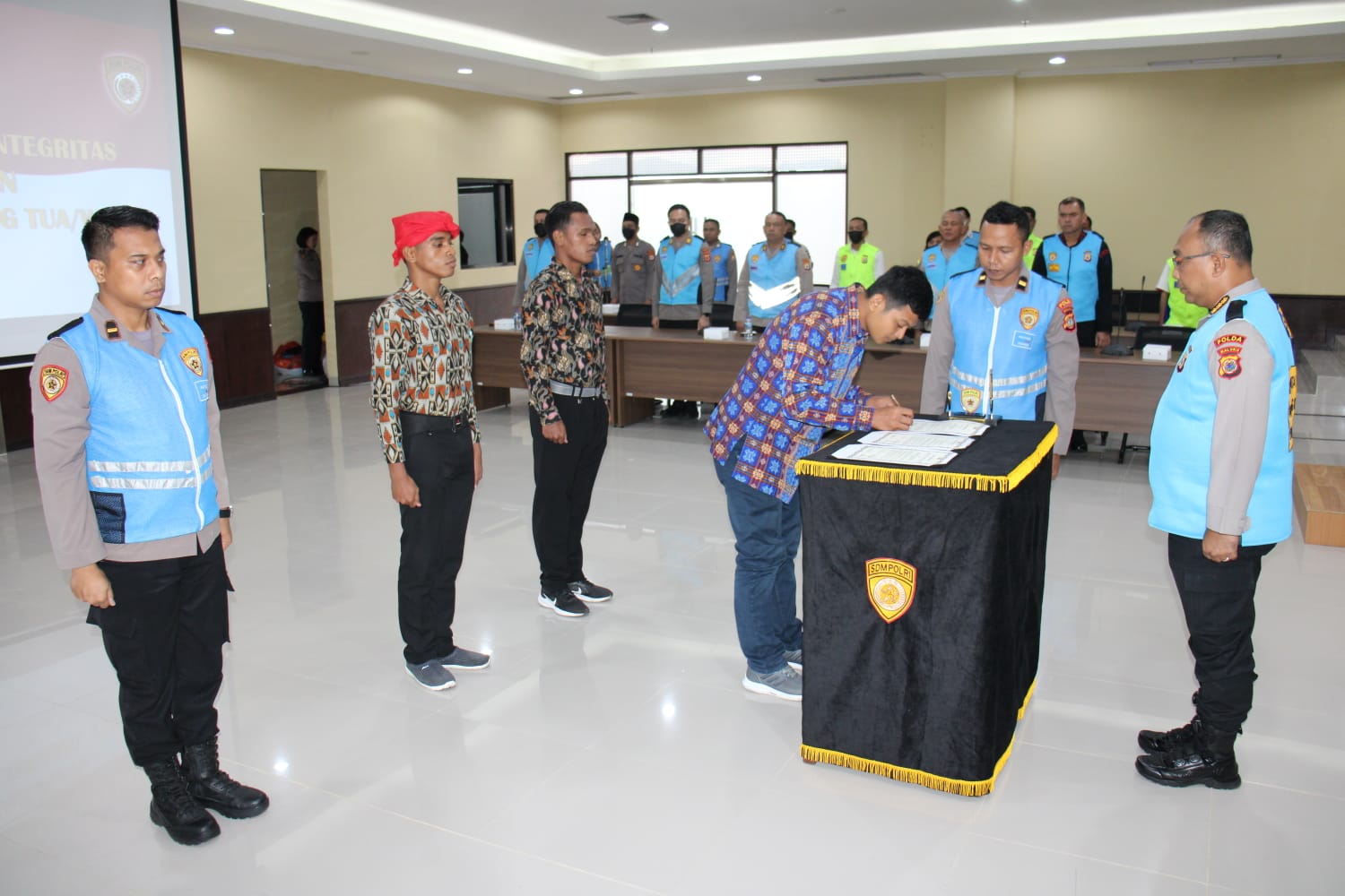 Malukuexpress.com, POLDAMALUKU– Sebanyak 186 orang peserta seleksi Rekrutmen Proaktif (Rekpro) Bintara Polri tahun 2023, mengikuti Pakta Integritas dan Pengambilan Sumpah bersama Panitia, maupun. Pengawas.