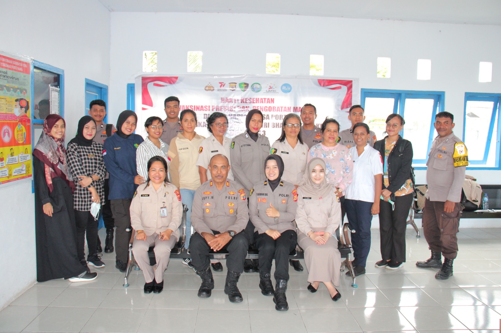 Bakti kesehatan yang digelar kali ini yaitu vaksinasi dan pengobatan gratis kepada masyarakat Negeri Haria dan Porto. Pengobatan dilaksanakan di ruang tunggu Pelabuhan Haria, Kecamatan Saparua, Kabupaten Maluku Tengah, Selasa (27/6/2023).