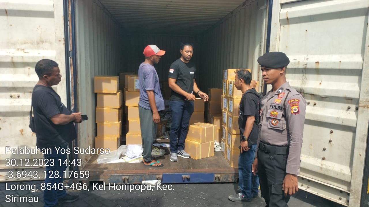 Kasi Humas Polresta Pulau Ambon dan Pp Lease, menjelaskan ribuan Koli ini untuk Kabupaten Buru sebanyak 195 Koli, Kabupaten Buru Selatan sebanyak : 106 Koli, Kabupaten Kepulauan Aru sebanyak : 147 Koli, Kabupaten Kepulauan Tanimbar sebanyak : 180 Koli, Kota Tual sebanyak : 128 Koli, Kabupaten Maluku Barat Daya sebanyak : 127 Koli, Kabupaten Maluku Tengah sebanyak : 631 Koli, Kabupaten Maluku Tenggara sebanyak : 185 Koli, Kabupaten Seram Bagian Barat sebanyak : 305 Koli, Kabupaten Seram Bagian Timur sebanyak : 219 Koli.