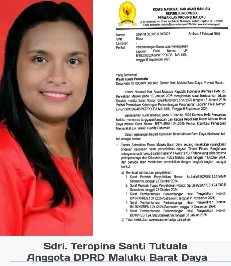 MALUKUEXPRESS.COM, Komis Nasional Hak Asasi Manusia Republik Indonesia dengan Nomor 029/PM.0000/355/I/2025 Tertanggal 4 Februari 2025.