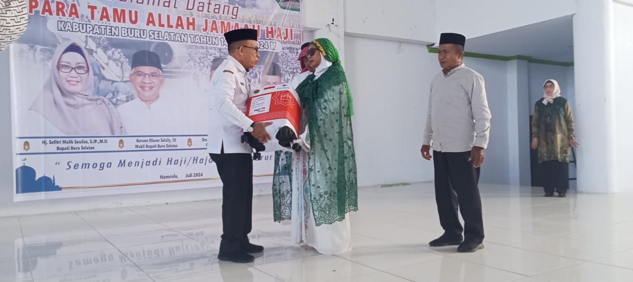 Namrole- Malukuexpress com, Pemerintah daerah Kabupaten Buru Selatan (Bursel) menyambut kedatangan Jamaah haji tahun 2024 di Aula Gedung Serbaguna Kota Namrole Kabupaten Bursel, Rabu 17 Juli 2024.