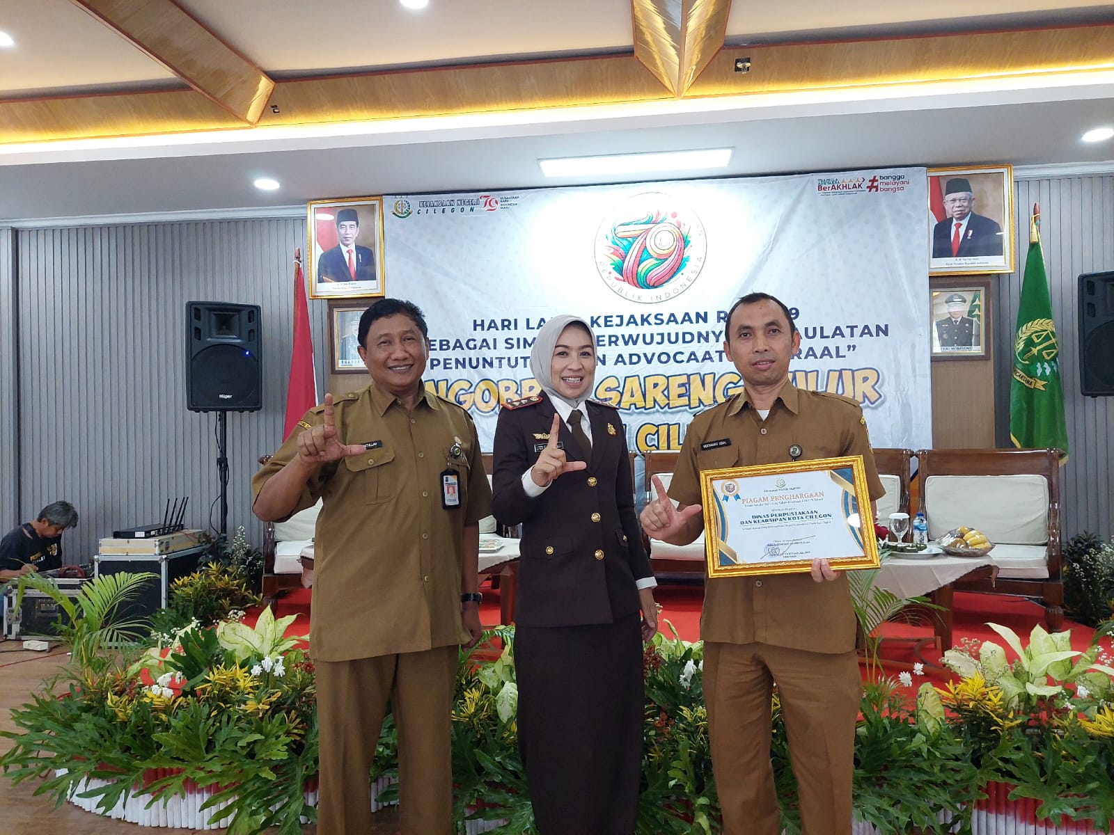 MALUKUEXPRESS.COM, Mohamad Iqbal Anggota Setya Kita Pancasila yang juga sekertaris Dinas Perpustakaan, Meraih Penghargaan yang diberikan langsun Kajari Cilegon Diana Wahyu Widiynti SH.,MH.di acara memperingati hari lahir kejaksaan ke 79 Tahun, acara penganugerahan penghargaan berlangsung di Aul Kejari Cilegon. Senin 2 September 2024.