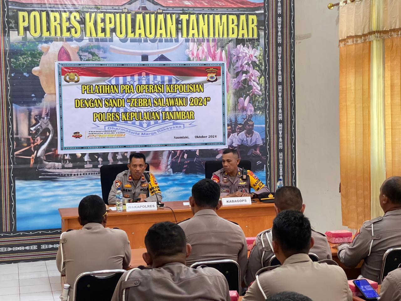 Dalam Sambutannya, Wakapolres Kepulauan Tanimbar Kompol FRIHAMDENI, S.H., S.I.K., M.A., mengatakan, pelaksanaan Latihan Pra Operasi (Latpraops) ini merupakan hal rutin yang wajib dilaksanakan oleh seluruh Personel sebelum melaksanakan Operasi. Tujuannya yaitu untuk menyamakan persepsi guna membantu pelaksanaan tugas saat di lapangan.
