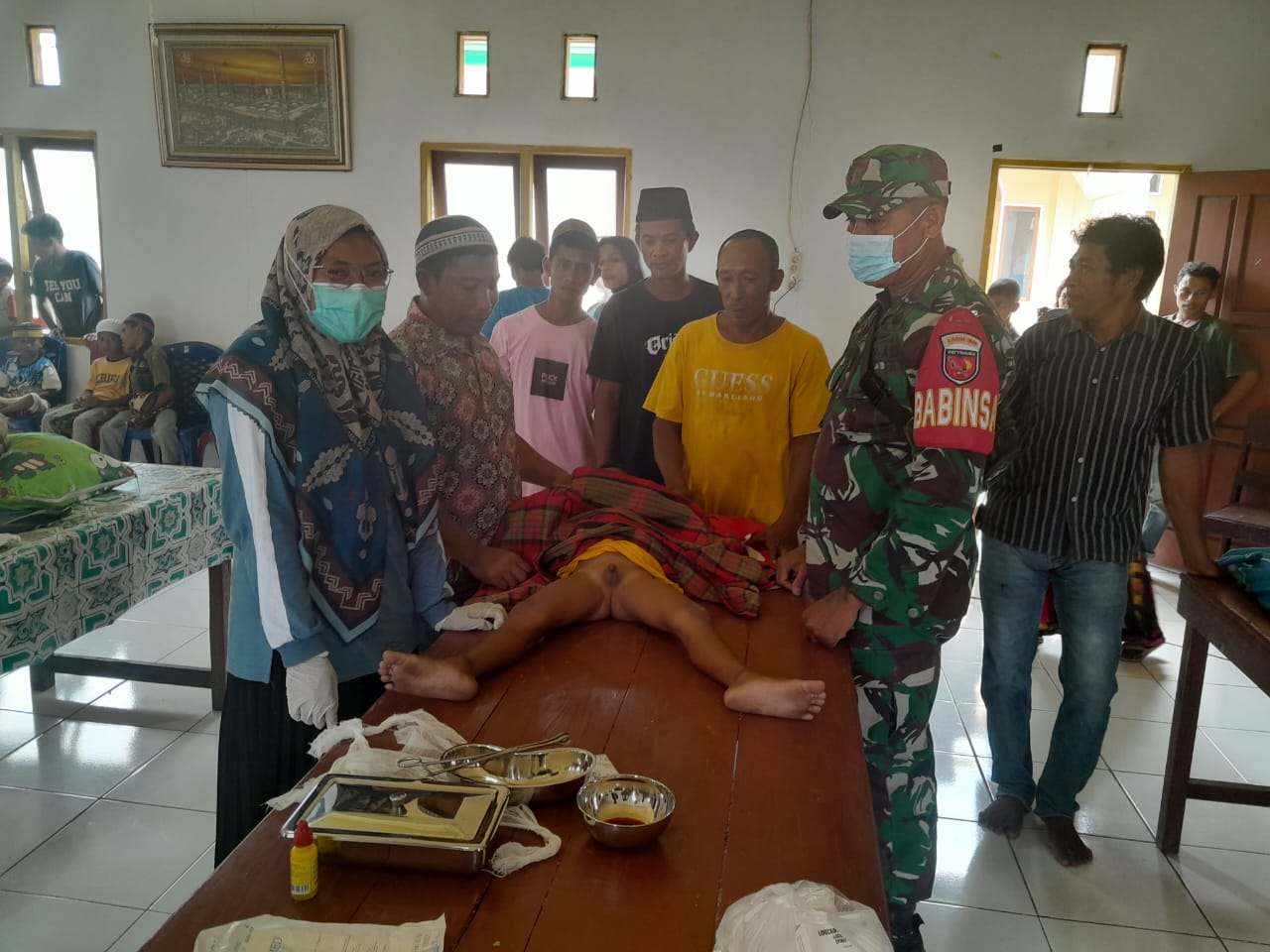 “Sunatan massal ini bertujuan untuk mambantu meringankan beban masyarakat, karena pelaksanaannya gratis. Selain sunatan massal, juga dilaksanakan pengobatan keliling”. kata Babinsa