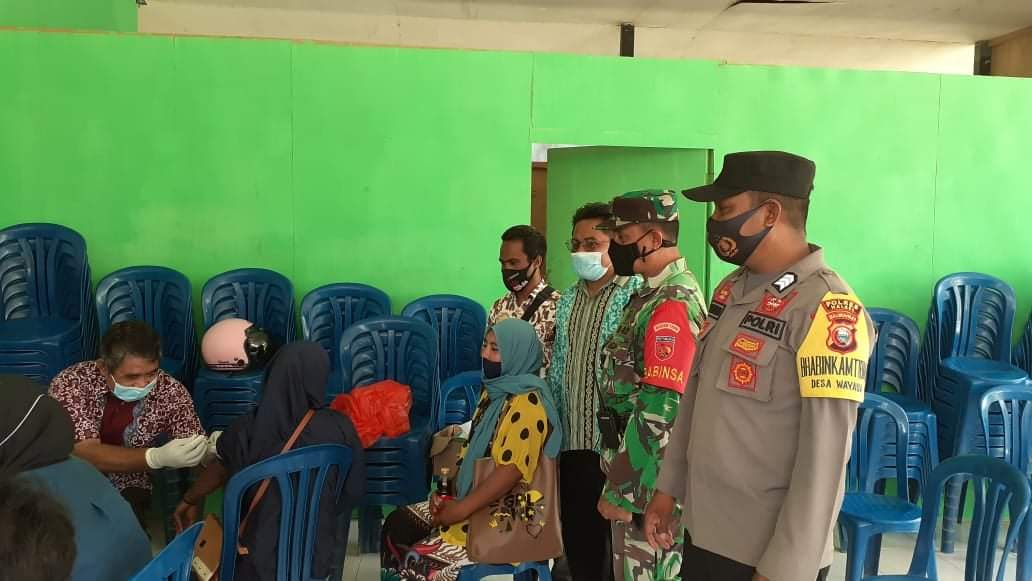 Kegiatan diawali dengan sosialisasi ke warga sekitar dan langsung di data oleh Dinkes setempat bagi warga yang akan melaksanakan Vaksinasi Covid 19 di desa tersebut, kegiatan tersebut berpusat di Uptd desa Wayaua.