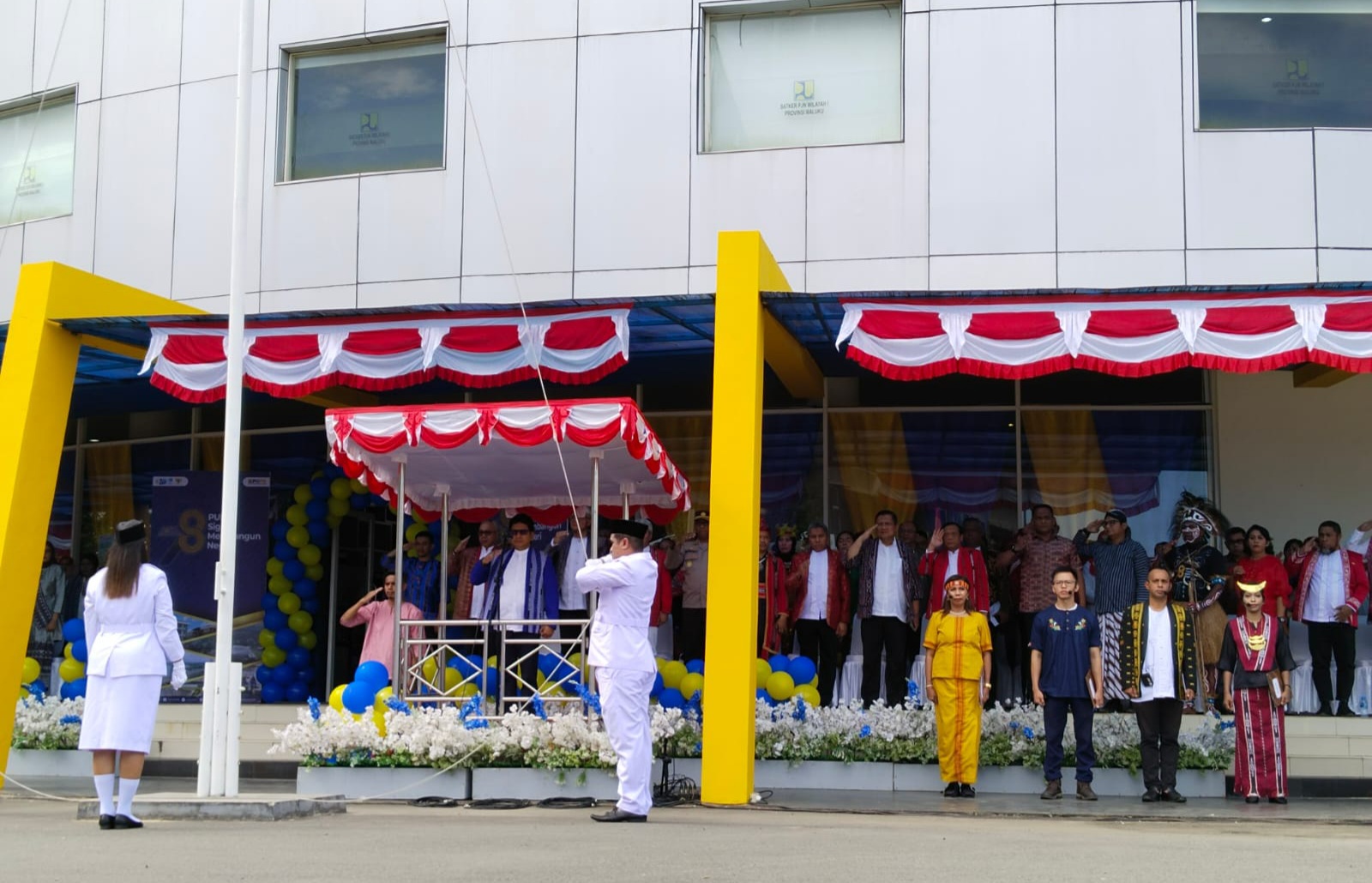 Turut hadir dalam upacara tersebut Sekeetaris Daerah Maluku Sadlie Le beserta 5 Kepala Balai yang ada di Kementerian PUPR Maluku beserta jajaran,
