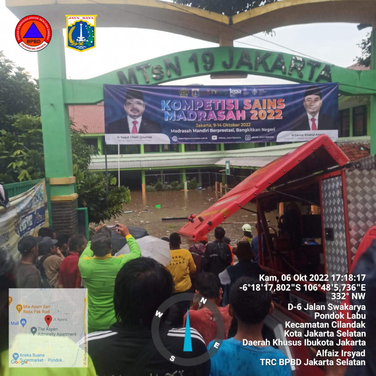 “Posisi sekolah berada di dataran rendah. Di sekitarnya terdapat saluran PHB Pinang Kalijati dan di belakang sekolah terdapat aliran sungai,” jelas Kepala Satuan Pelaksana Data Pusdatin BPBD Provinsi DKI Jakarta Michael.