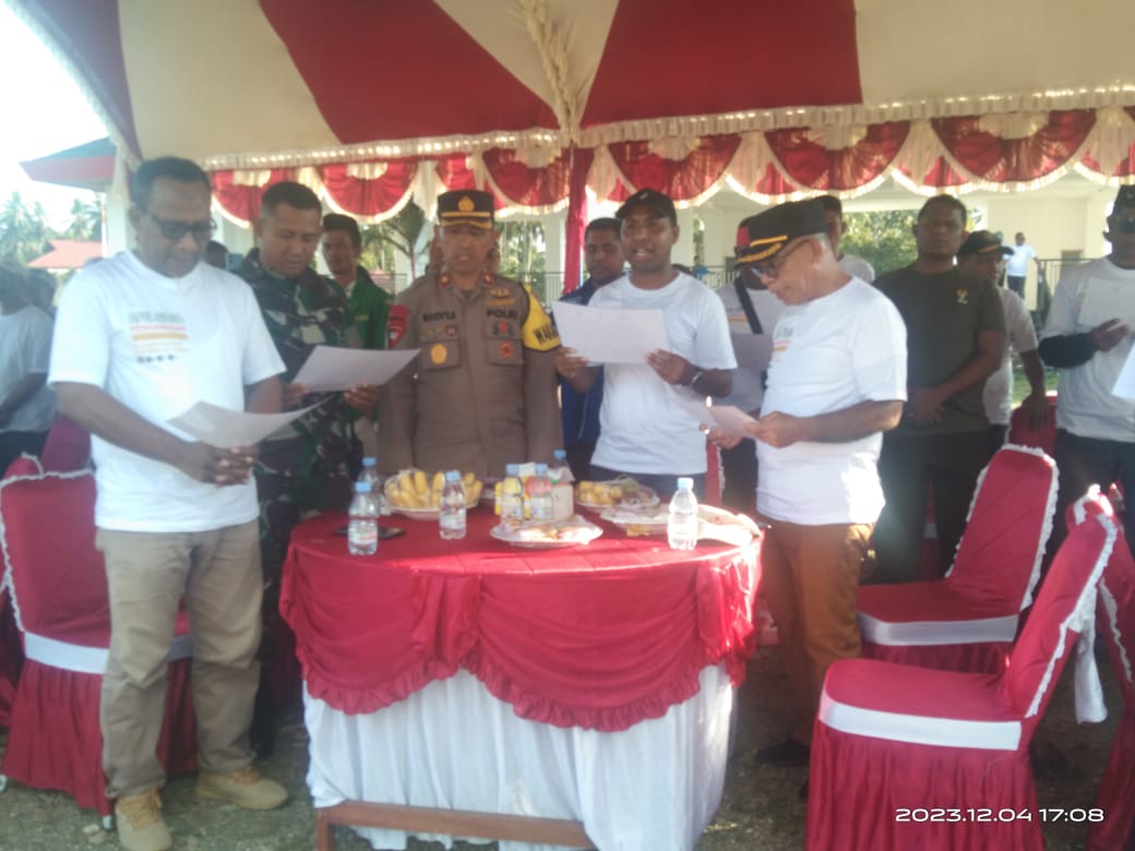 Apel Siaga Deklarasi Damai dilaksanakan Bawaslu dengan tema, “Baku Kele Awasi Vor Biking Bae Pemilu Serentak 2024”.