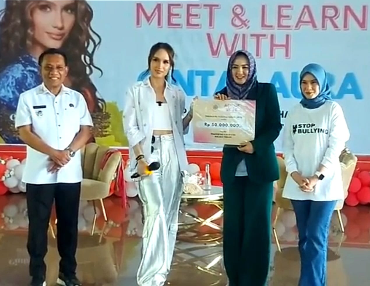 Donasi tersebut diserahkan oleh Cinta Laura disela-sela kegiatan Workshop Meet and Learn, yang diselenggarakan oleh TP-PKK Malteng di Baileo Ir Soekarno, rabu (26/7/2023).