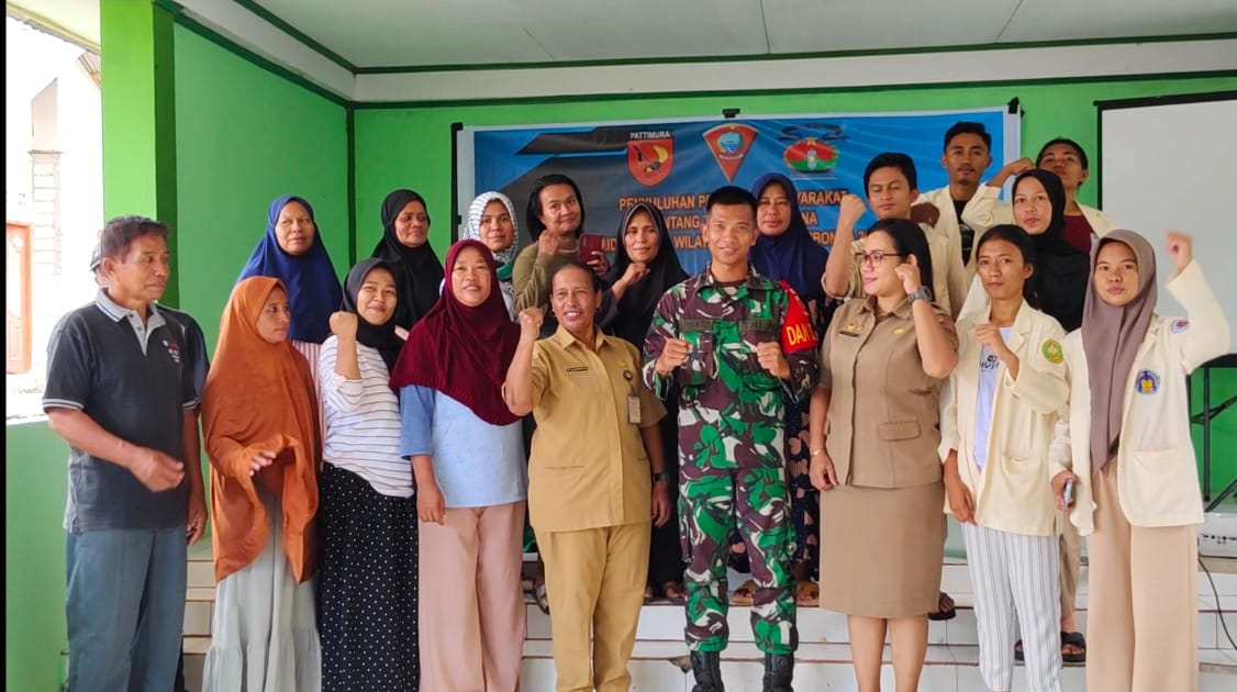 Ambon,Malukuexpress.com-Satgas TMMD ke 119 Kodim 1594/Ambon gandeng Dinas BPBD Kota Ambon, berikan penyuluhan kepada warga Dusun Bandari, Desa Rumahtiga, Kec Teluk Ambon, Kota Ambon, Senin (04/02/2024).