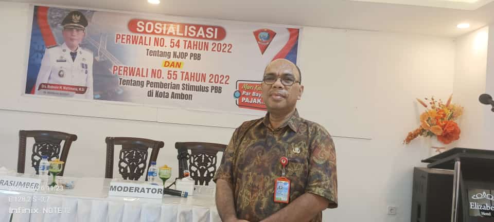 Ambon, Malukuexpress.com-Badan pengelolahan pajak dan restibusi daerah Pemerintah Kota Ambon menindaklanjuti peraturan Walikota No 54 Tahun 2022 tentang nilai objek pajak bumi dan bangunan dan peraturan Walikota no 55 Tahun 2022 tentang pemberian stimulus dikota Ambon dengan menggelar sosialisasi pajak bumi dan bangunan bagi masyarakat dan pengusaha pajak.