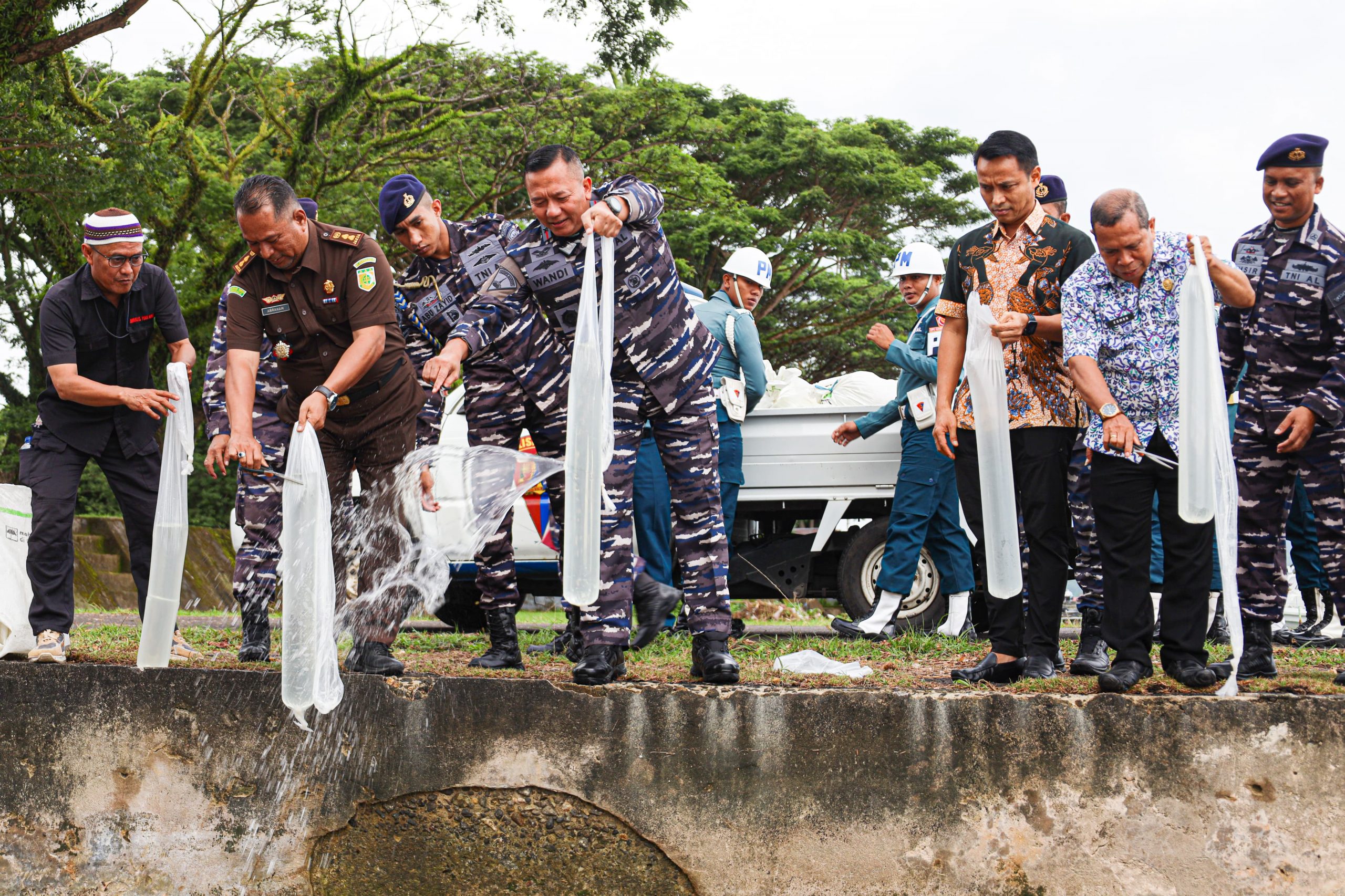 Brigjen TNI (Mar) Suwandi selaku Danlantamal IX didampingi Gubernur Maluku dalam hal ini Kakesbangpol diwakili Sekretaris Kesbangpol Provinsi Maluku, Kapolda Maluku diwakili Dikrimum, Kajati Maluku diwakili Aspidmil Kajati Maluku, Asisten Danlantamal IX, Kadiskum Lantamal IX, Danpomal Lantamal IX mengadakan _press release_ yang disaksikan oleh wartawan.