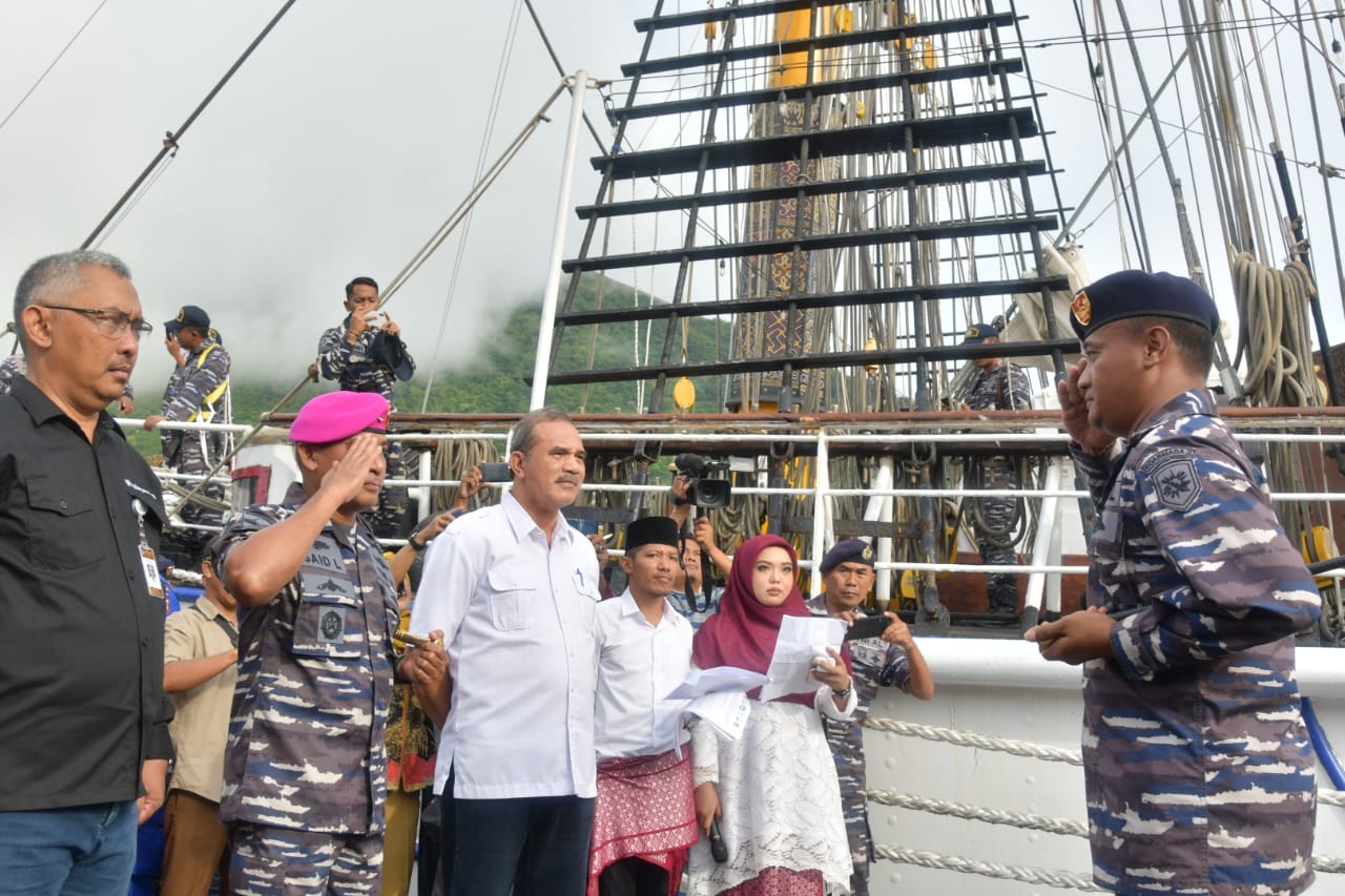 TNI Angkatan Laut. Minggu (19/6/2022) Komandan Lantamal IX Ambon Brigjen Said Latuconsina, M.M., M.T., menyambut KRI Dewaruci, kapal layar latih legendaris yang berada di bawah satuan kapal bantu Koarmada II, dengan Komandan Mayor Laut (P) Sugeng Hariyanto, M.Tr.Opsla. bersama Laskar Muhibah Budaya Jalur Rempah Nusantara 2022, tiba di Pelabuhan Banda Neira Kecamatan Banda Kabupaten Maluku Tengah.