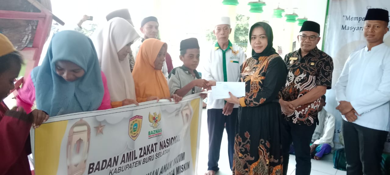 Bupati Buru Selatan Hj. Safitri Malik Soulisa dan memberikan bantuan jakat amal kepada masyarakat setempat semoga menjadi amal ibadah di bulan Ramadhan ni.