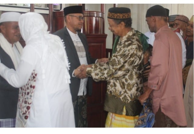 Usai Sholat Ied Bupati La Hamidi Didampingi Istri Pun Bersalam-Salaman dengan seluruh jama’ah sholat Ied, guna mempererat tali silaturahmi.