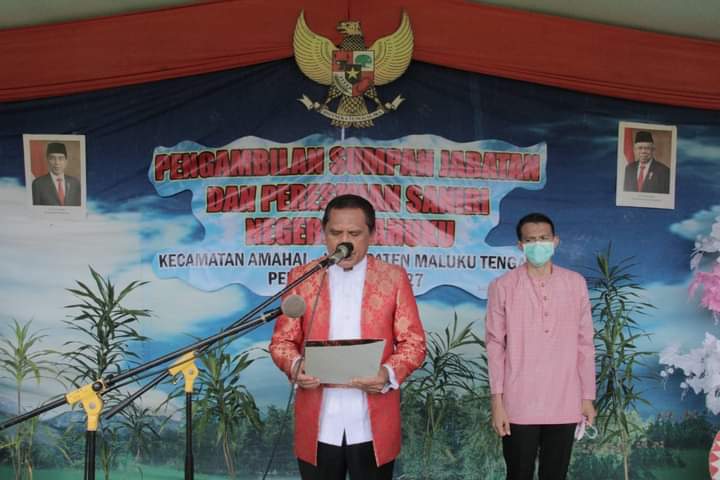Malukuexpress.com, Bupati Maluku Tengah Abua Tuasikal, SH dalam Sambutannya Pada Acara Pengambilan Sumpah Jabatan Dan Peresmian Saniri Negeri Soahuku Kecamatan Amahai. Sabtu, 12 Juni 2021