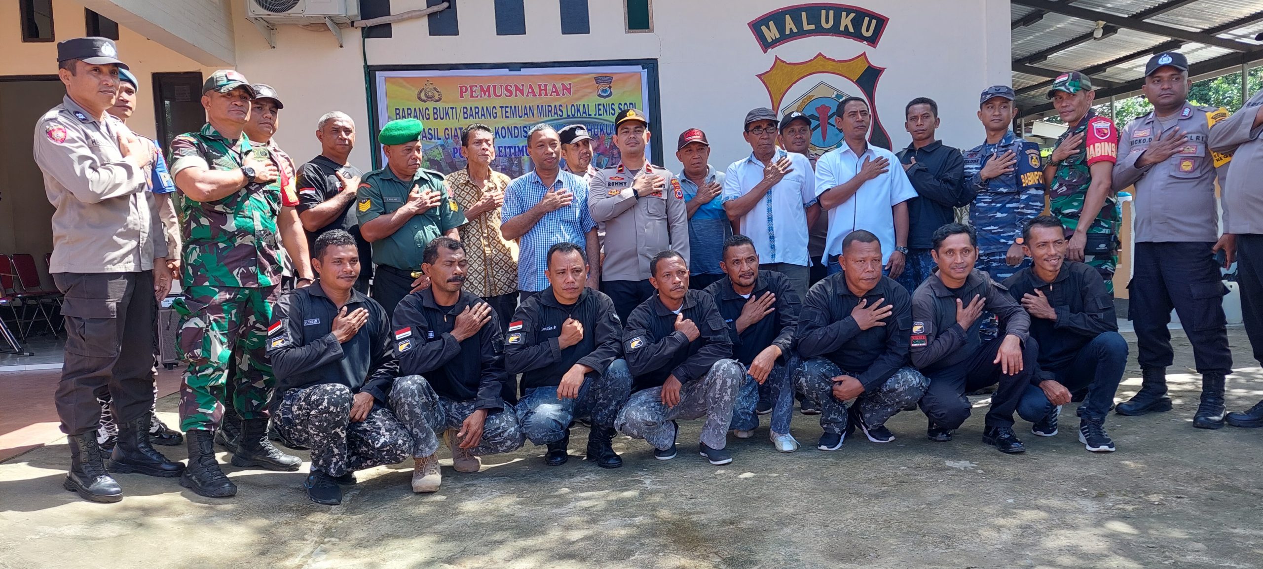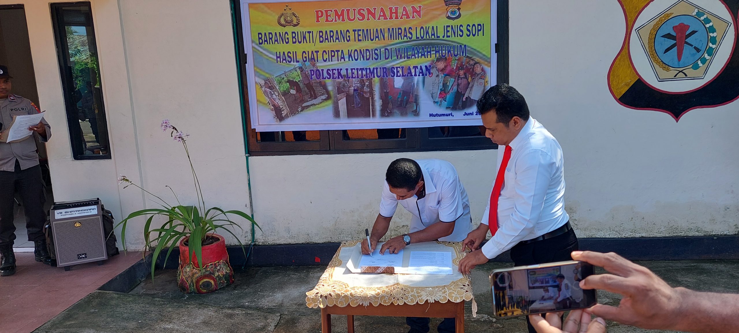 MALUKUEXPRESD.COM, Kegiatan Pemusnahan Barang Bukti atau Barang temuan miras tradisional jenis sopi yang merupakan giat Cipta Kondisi diwilayah Hukum Polsek Leitimur Selatan. Bertempat di Mapolsek Leitimur Selatan. Rabu (07/05).
