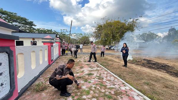 Tampak terlihat seluruh Personel Polres Kepulauan Tanimbar saling bahu membahu dan gotong royong bersama lakukan aktivitas Kurve seperti memungut sampah yang berserakan, membersihkan, memotong serta mencabut rumput liar yang tumbuh, membersihkan langi-langit ruangan maupun kaca jendela hingga membakar sampah.