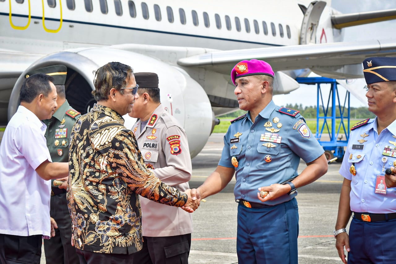 Tepat pada pukul 13.00 WIT pesawat khusus Boeing TNI AU B-737-400/A-7305 yang membawa Menkopolhukam Mahfud MD dan Mendagri Jenderal Polisi (Purn) Tito Karnavian beserta rombongan tersebut mendarat di Bandara Internasional Pattimura Ambon dan disambut oleh Gubernur Maluku, Pangdam XVI/Pattimura, Kapolda Maluku dan Komandan Lantamal IX beserta jajaran Forkopimda lainnya diiringi dengan tari penyambutan dan pengalungan syal kain Tenun.