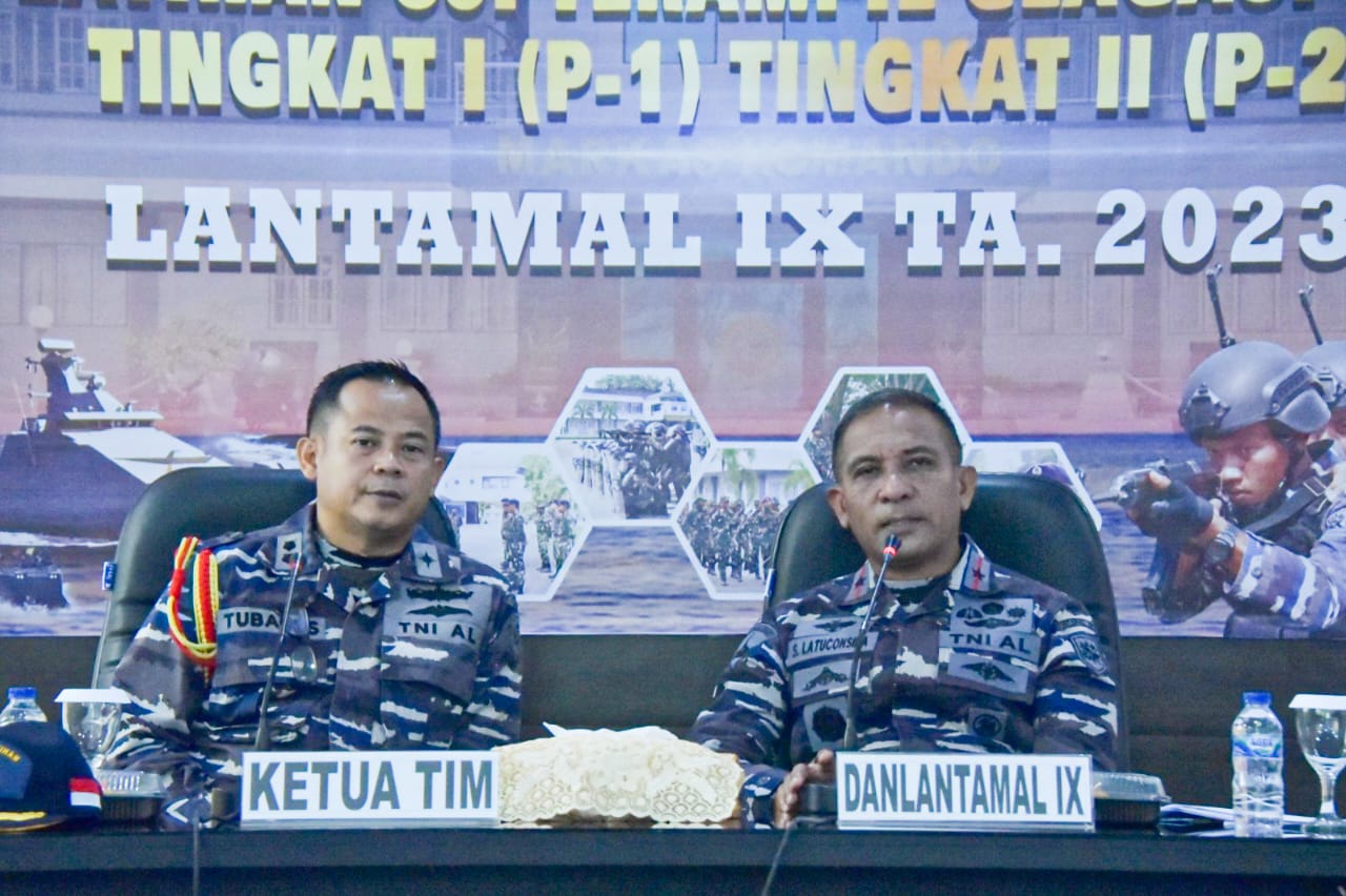 Ambon,Malukuexpress.com-TNI Angkatan Laut. Pangkalan Utama TNI Angkatan Laut (Lantamal) IX Ambon. Tingkatkan kemampuan pangkalan, Brigjen TNI (Mar) Said Latuconsina M.M., M.T., M.Tr. Opsla pimpin langsung Pembukaan Latihan Uji Terampil Gladi Tugas Tempur (Glagaspur) Tingkat I-II (P1-P2) Lantamal IX tahun anggaran 2023 bertempat di Mako Lantamal IX, Halong, Kota Ambon. Senin (30/20/23)