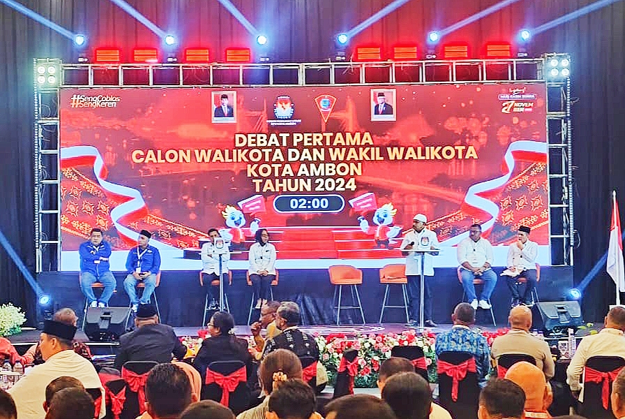 Debat pertama ini yang dilaksanakan KPU Kota Ambon mengusung tema ” Tata Kelolah Pemerintahan, Pelayanan Publik dan Harmonisasi Sosial.