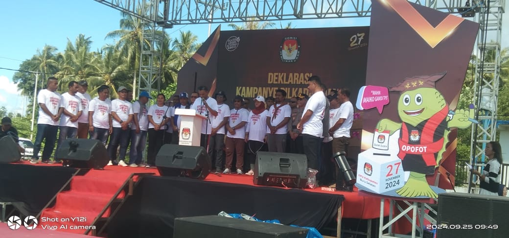 Namrole -Malukuexpress.com.Komisi Pemilihan Umum (KPU) Kabupaten Buru Selatan (Bursel), Rabu, 25 September 2025, menggelar deklarasi kampanye Pemilihan Kepala Daerah (Pilkada) damai, di pertigaan Bank Maluku-Maluku Utara (Malut).