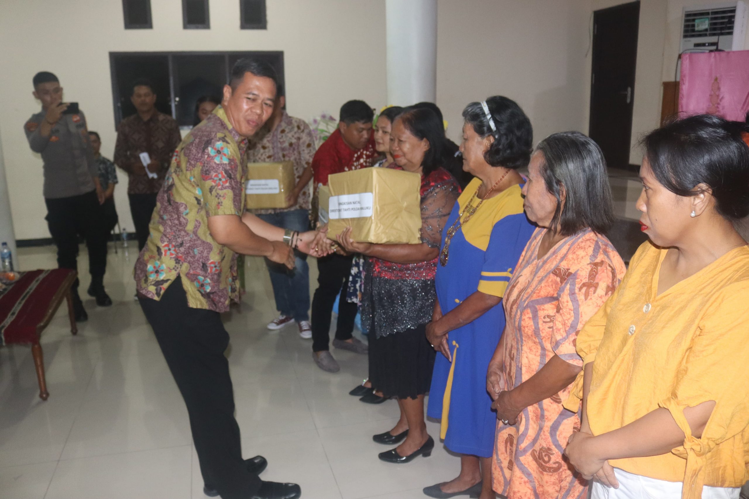 Pada perayaan Natal itu, Direktur Binmas Polda Maluku bersama Plt Direktur Tahti dan perwakilan mantan Direktur Tahti Polda Maluku AKBP Apeles Letti menyerahkan bingkisan Natal kepada perwakilan jemaat yang hadir.