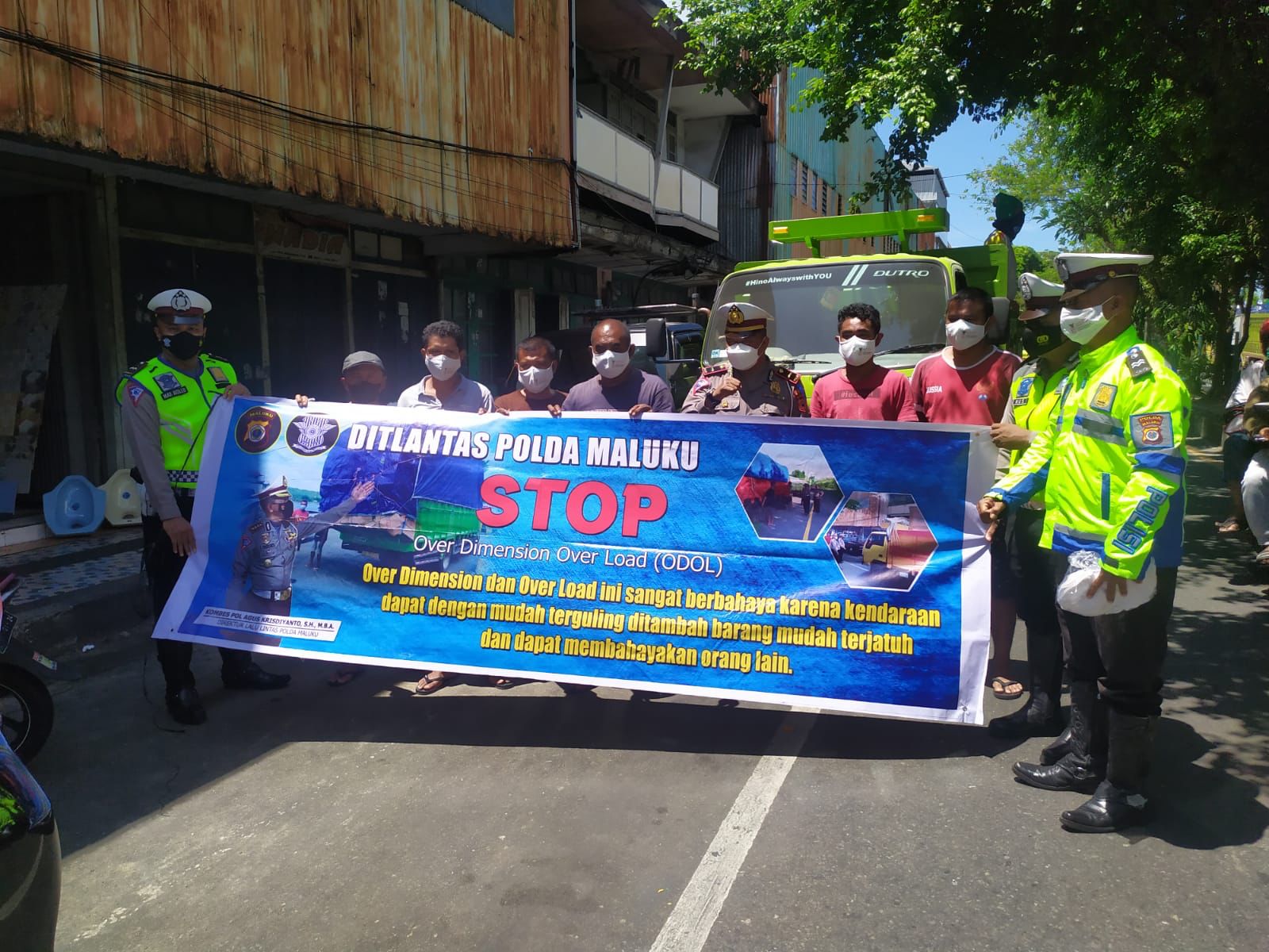 Kepada para pengemudi truk angkutan barang, polisi lalu lintas dari Ditlantas Polda Maluku tersebut mensosialisasikan terkait larangan Truk Odol.