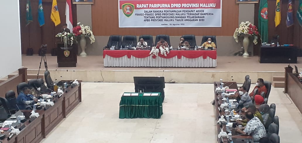 Malukuexpress.com, DPRD Maluku melalui delapan fraksi talah menyetujui Rancangan Peraturan Daerah (Ranperda) tentang pertanggungjawaban pelaksanaan APBD Provinsi Maluku Tahun Anggaran (TA) 2020 untuk ditetapkan menjadi Peraturan Daerah dengan nomor 15 tahun 2021 tertanggal 6 Agustus.