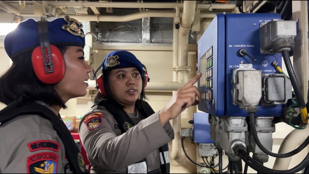 Tak hanya itu, dua anggota Polwan Polair Polda Maluku ini juga dikenalkan mengenai aktivitas pada bidang mesin. Mereka dikenalkan mengenai jenis-jenis mesin induk kapal, dan mesin motor bantu kapal, berikut kegunaan dan cara pengoperasiannya. Kegiatan lainnya yang mereka lakukan yaitu melaksanakan peran tolak sandar kapal.