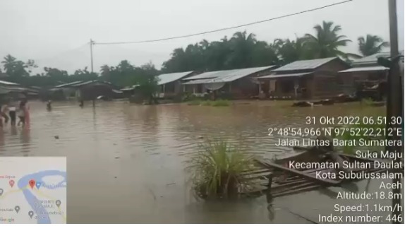Peristiwa banjir juga terjadi di Kota Subulussalam, Provinsi Aceh. Dipicu hujan deras dengan itensitas tinggi pada Senin (31/10) pukul 05.15 waktu setempat.