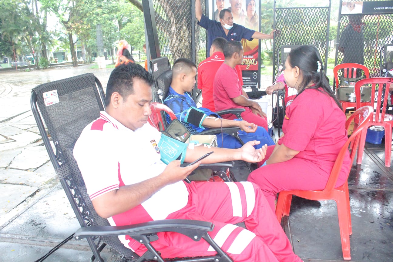 “Untuk target dalam kegiatan donor darah di hari ini kami sangat berharap bisa mencapai 100 kantong darah dengan kehadiran dari unsur TNI Polri,”jelasnya.