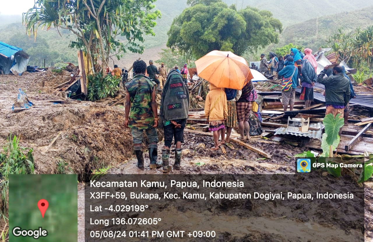 Badan Penanggulangan Bencana Daerah (BPBD) Kabupaten Dogiyai melaporkan situasi mutakhir di lokasi kejadian masih turun hujan dengan intensitas sedang hingga tinggi.