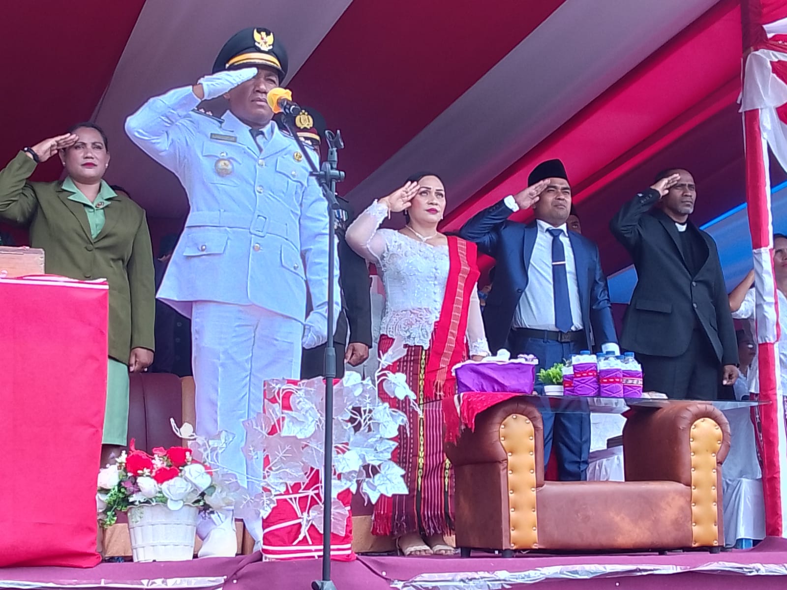 Erens Y Feninlambir, ketika ditemui media ini menyampaikan, Saya bersyukur sekaligus bangga karena ditunjuk membacakan teks Proklamasi pada acara Pengibaran bendera yang selenggarakan. sangat bahagia karena antusias dari Semua Lapisan Masyarakat hadir memenuhi lapangan upacara.