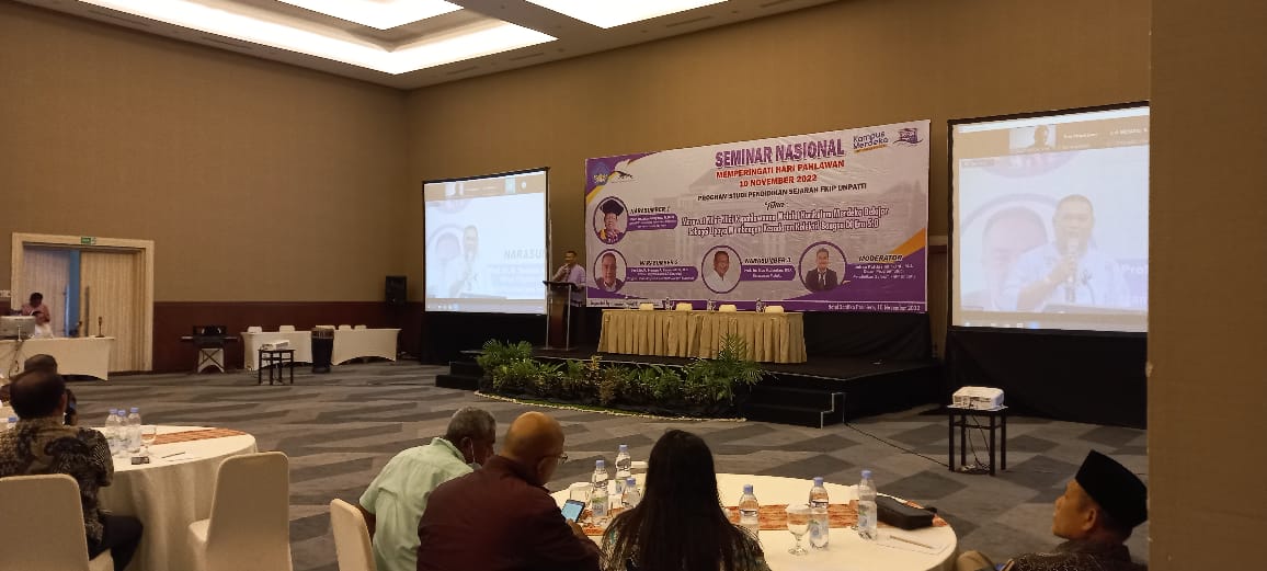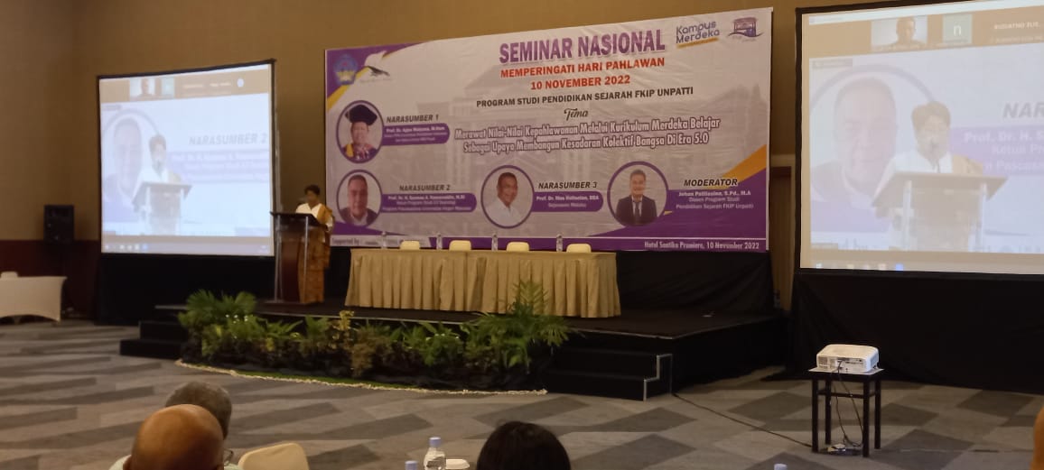 Malukuexpress.com, Dalam rangka memperingati Hari Pahlawan Nasional 10 November 2022 yang ke 77 tahun. Fakultas Keguruan dan Ilmu Pendidikan Universitas Pattimura, Program Studi Pendidikan Sejarah menggelar seminar nasional, dengan sorotan tema : Merawat Nilai-Nilai Kepahlawanan Malalui Kurikulum Merdeka Belajar Sebagai Upaya Membangun Kesadaran Kolekif di Era 5.0.