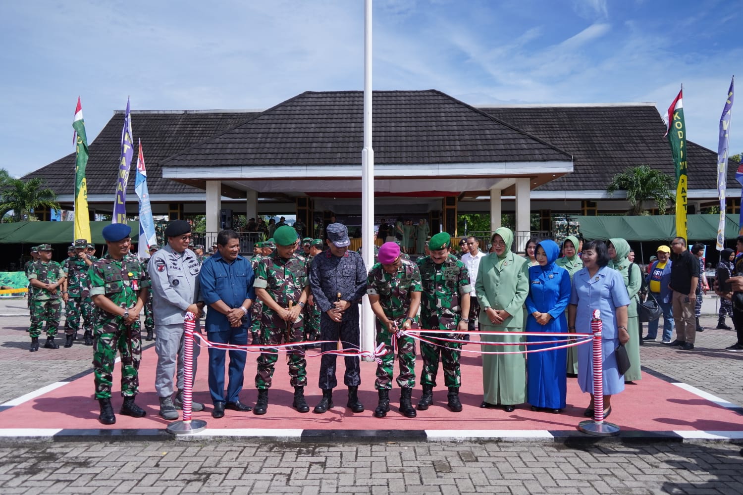 Pangdam XVI/ Pattimura, Mayjen TNI Ruruh A. Setyawibawa, S.E., M.M. beserta Ketua Persit KCK Daerah XVI/Pattimura, Ny. Indah Ruruh A.Setyawibawa hadir dalam acara tersebut.