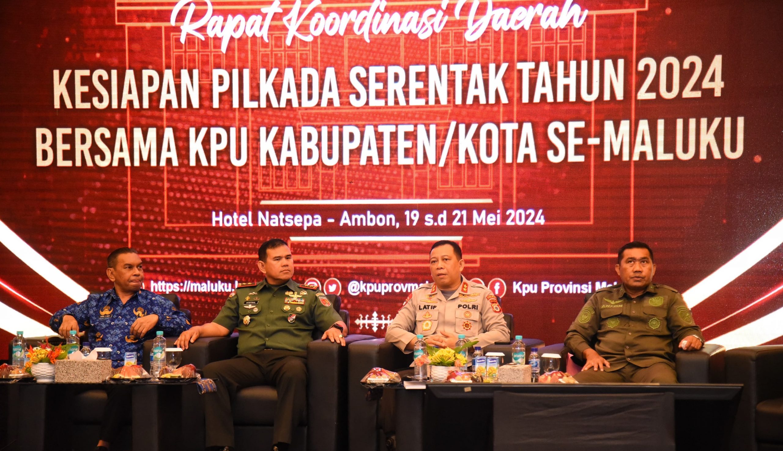 Kesiapan tersebut disampaikan Kapolda saat menghadiri Rapat Koordinasi (Rakor) Persiapan Pilkada serentak bersama KPU Provinsi dan Kabupaten Kota se-Maluku di Balroom The Natsepa Hotel, Senin (20/5/2024).