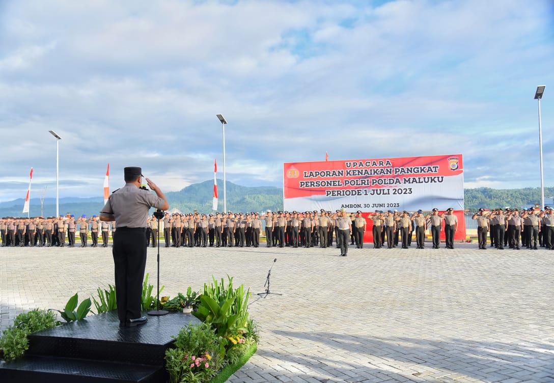 Tercatat sebanyak 296 personel Polri di Maluku dinaikan pangkat setingkat lebih tinggi. Jumlah ini terdiri dari Polda Maluku 111, dan Polres/ta jajaran sejumlah 185 personel.