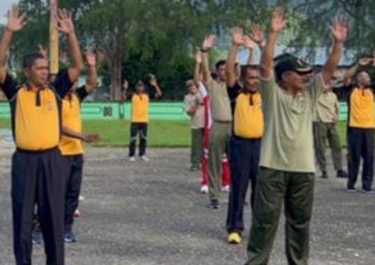 Namrole,- Malukuexpress com..Dalam rangk menyambut HUT Bhayangkari Ke 77 tahun 2023, TNI & Polri Kabupaten Buru Selatan, Provinsi Maluku menggelar kegiatan jalan santai dan senam sehat Aerobik dilanjutkan dengan kegiatan, Bola Voly dan Futsal, kegiatan tersebut berlangsung di Mako Batalion Infantri 731 kompi senapan D Namrole, ibukota Kabupaten Bursel, Jumat 26/5/2023.