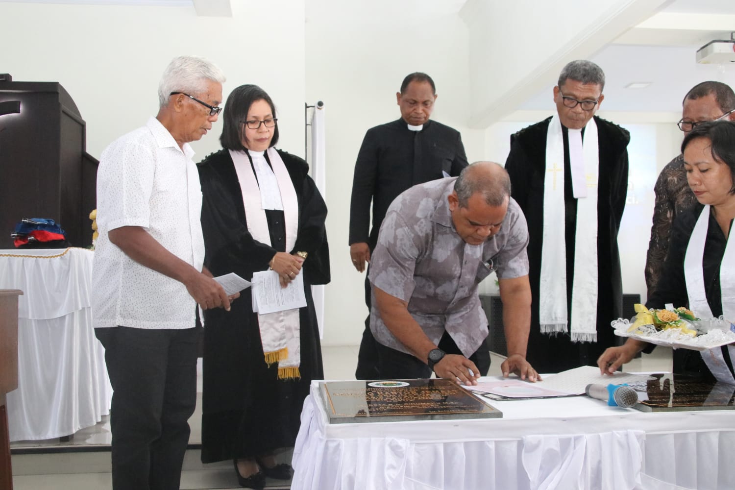 AMBON– Staf Ahli Gubernur Bidang Ekonomi, Investasi dan Pembangunan, Demy Lilipory, Minggu (22/5/2022) mewakili Gubernur Maluku, Murad Ismail menghadiri acara Peresmian Gedung Kantor dan Pastori IV GPM Imanuel OSM, Kota Ambon.