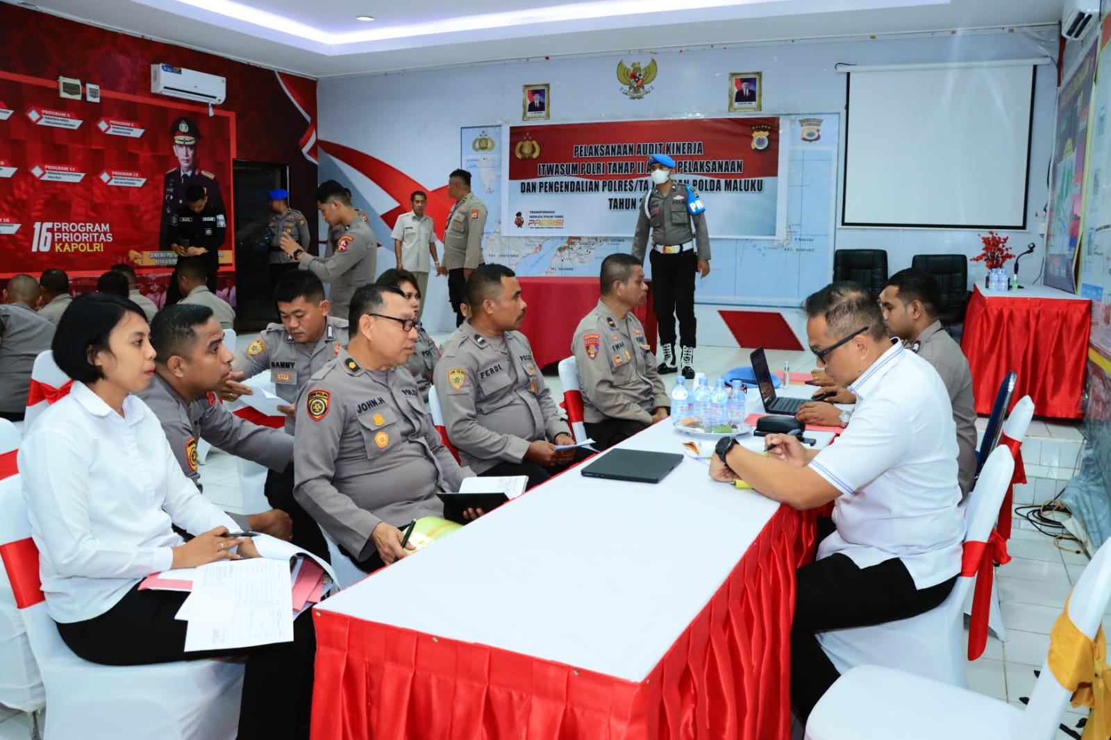 Kedatangan Brigjen Pol Rinto Diatmono, S.I.K, M.H Selaku Pengawas Tim Audit serta Ketua Tim Audit Kinerja Itwasum Polri KBP Ady Wibowo,S.I.K, M.Si bersama Rombongan Tim Audit Kinerja Itwasum Polri tiba di Polresta Ambon dan diterima langsung oleh Kapolresta Ambon Kombespol Raja Arthur L Simamora S.IK. di Ruangan Kerja Kapolresta Ambon.