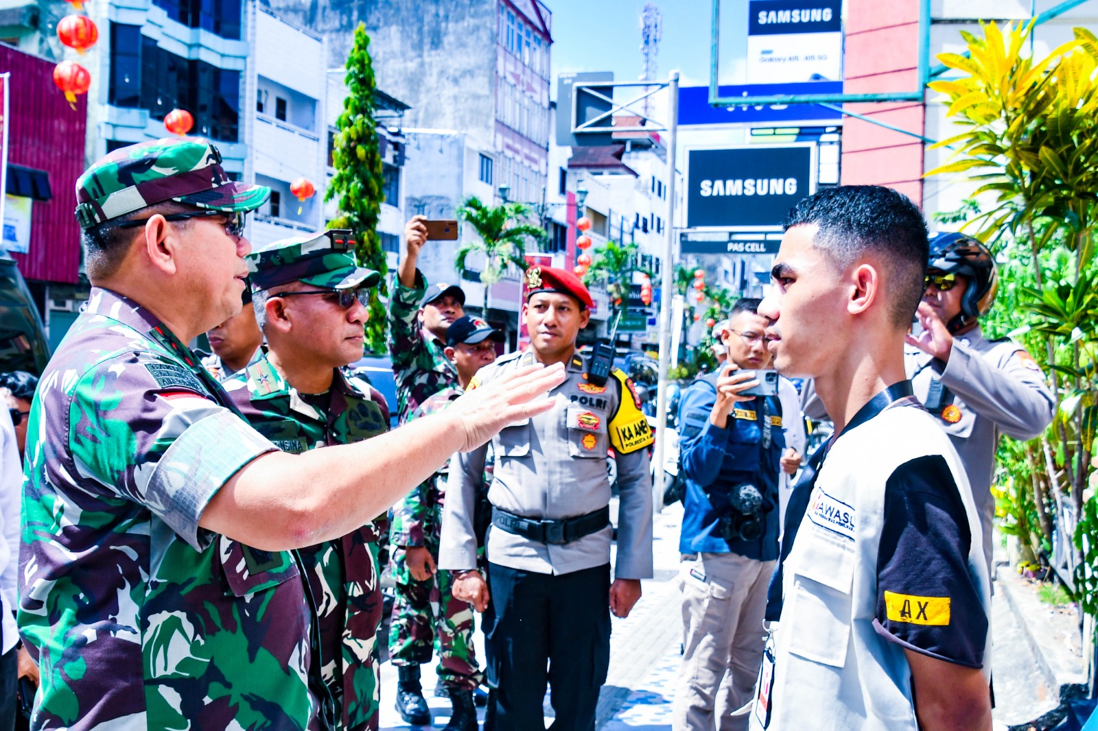 Setibanya di lokasi TPS, Pangdam menyempatkan diri berdialog dengan petugas KPPS dan Anggota PAM TPS, termasuk dengan anggota TNI-Polri yang sedang melaksanakan pengamanan. Disini Pangdam menanyakan soal kendala maupun proses pengamanan di TPS, hingga jumlah pemilih yang sudah datang ke TPS. Tak lupa, Pangdam juga menyapa masyarakat yg akan memilih sekaligus berpesan untuk menggunakan Hak pilih dengan baik.