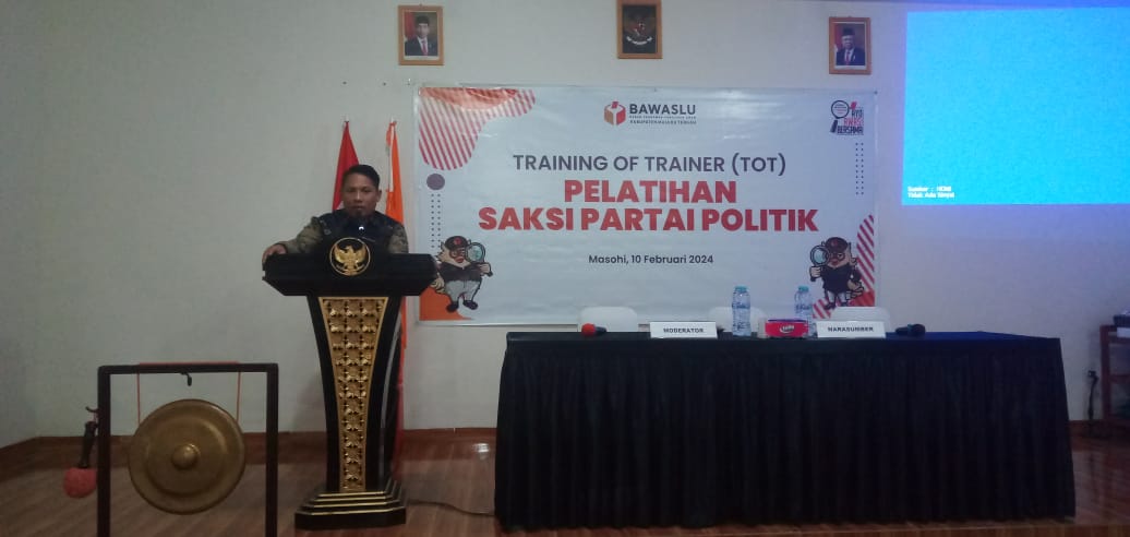 Malukuexpress.com, Masohi – Badan Pengawasan Pemilihan Umum (Bawaslu) Kabupaten Maluku Tengah, melaksanakan Training of Trainer (ToT) Pelatihan Saksi Partai Politik peserta Pemilihan Umum 2024, yang berlangsung di Aula Hotel Isabela Masohi, sabtu (10/2/2024).