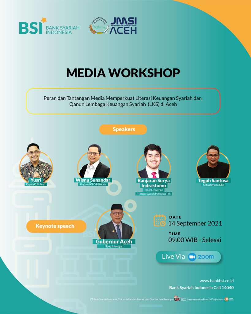 Acara yang dilangsungkan secara webinar tersebut, menghadirkan sejumlah narasumber, seperti Regional CEO 1 BSI Aceh, Wisnu Sunandar, Ketua OJK Aceh, Yusri, Chief Economies BSI, Banjaran Surya Indrastomo, dan Ketua Umum JMSI, Teguh Santosa.