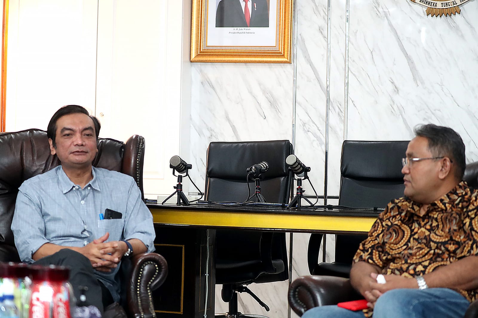 Teguh dan rombongan diterima Ketua Divisi Perencanaan, Keuangan, Umum, Rumah Tangga, dan Logistik KPU RI Yulianto Sudrajat, serta Ketua Divisi Sosialisasi, Pendidikan Pemilih dan Partisipasi Masyarakat KPU RI August Mellaz.