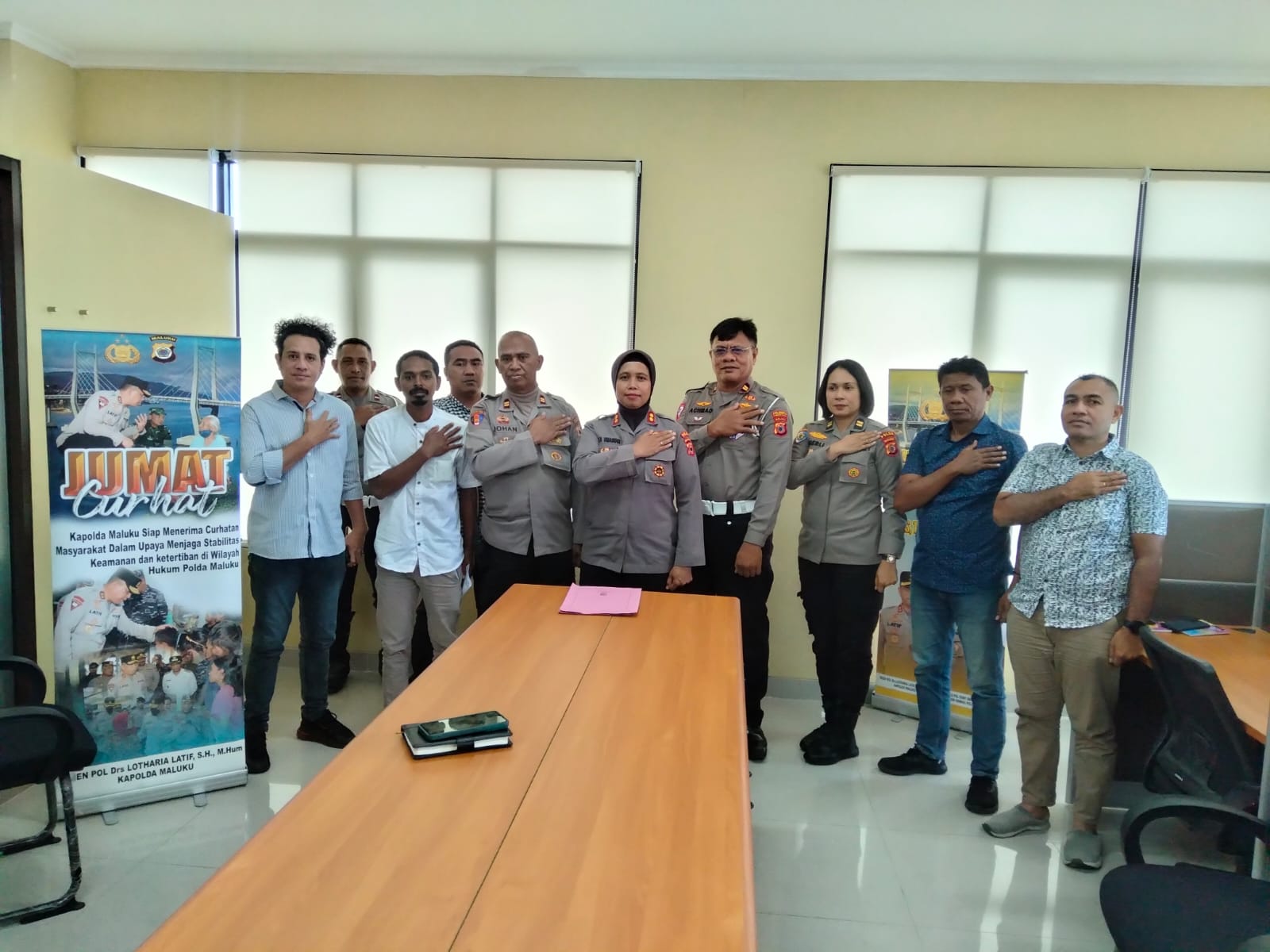 Malukuexpress.com, POLDAMALUKU- Kepolisian Daerah Maluku menggelar kegiatan Jumat Curhat bersama keluarga almarhum Geldy Silooy di ruang Direktorat Binmas Polda Maluku, Kota Ambon, Jumat (14/4/2023).
