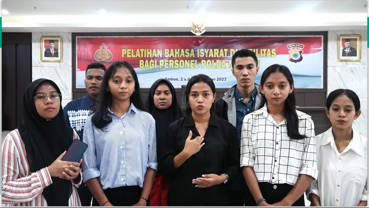 Pelatihan bahasa isyarat disabilitas digelar selama 3 hari dan diikuti sebanyak 30 peserta dari personil Polda Maluku dan Polres/ta jajaran. Kegiatan dibuka oleh Kapolda Maluku di Rupatama Mapolda Maluku, Kota Ambon, Rabu (2/11/2022).