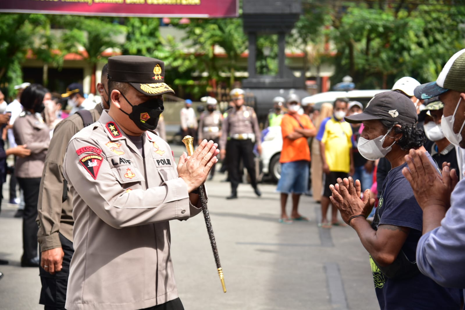 “Saya dari pangkalan ojek Batu Meja menyampaikan terima kasih kepada bapak Kapolda, bersama crew (jajaran) dan ibu-ibu yang sudah membantu kami memberikan sembako, terima kasih saya ucapkan,” kata Bapak Ongen, seorang tukang ojek.