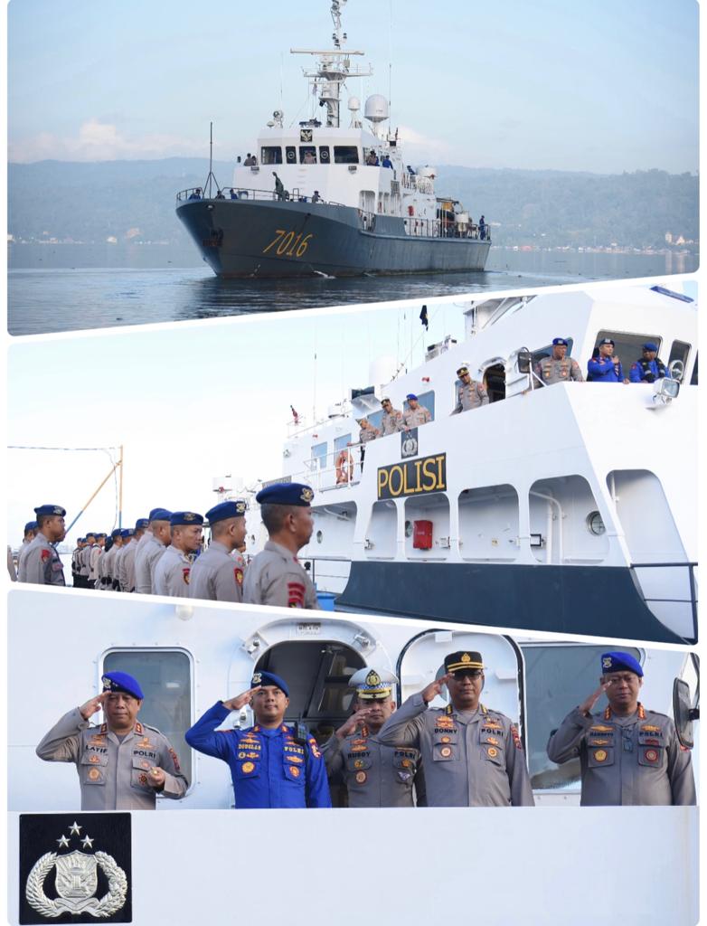 Kapolda yang didampingi Karo Ops, Karo Log, Direktur Polair dan Direktur Lalulintas Polda Maluku berangkat menggunakan Kapal Polisi (KP) Anggada 7016.